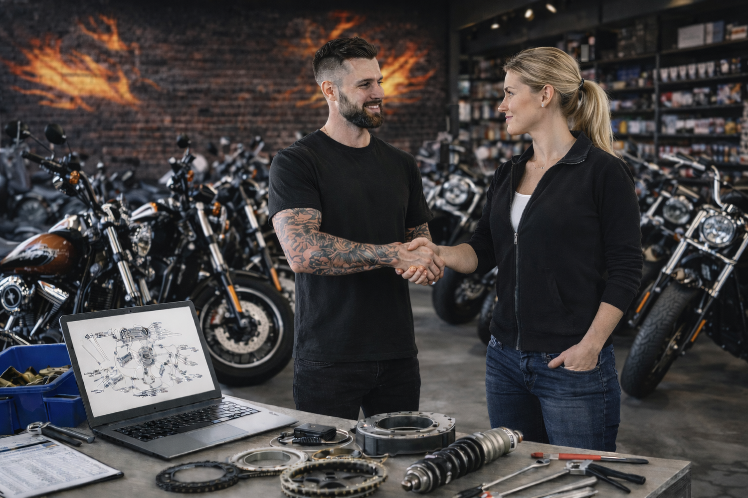 Mehr als nur Harley-Parts: Wir finden für jede Marke die passenden Komponenten, begleiten dich mit individueller Umbauberatung und beschaffen auf Wunsch auch seltene Teile außerhalb unseres Shops – ergänzt durch unseren professionellen An- und Verkauf von Motorrädern inklusive Custom-, Projekt- und Wunschbike-Service und vieles mehr aus einer Hand.