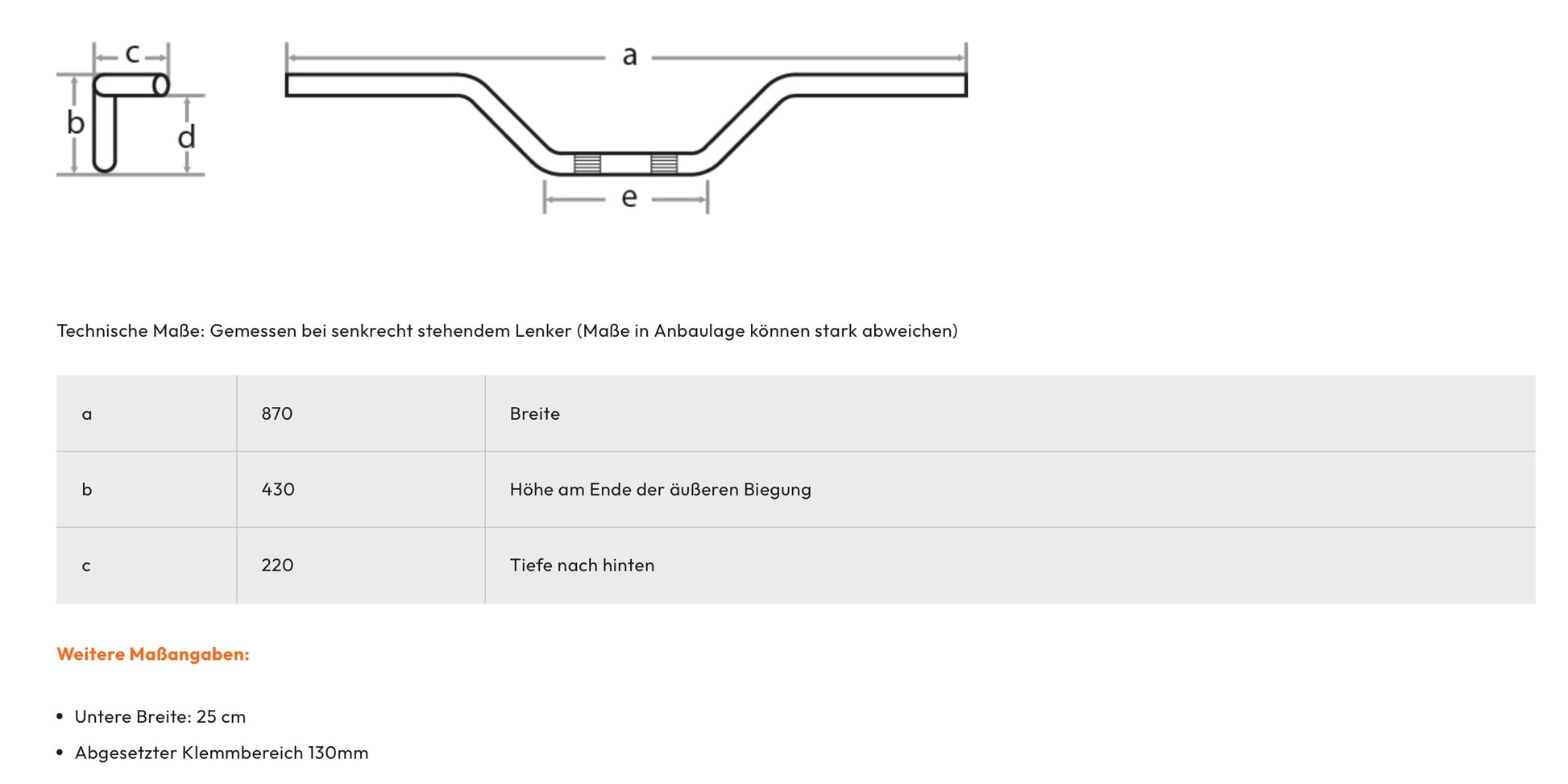 - Clamping range: 1" (25.4 mm), offset, 130 mm wide