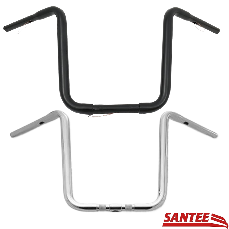 The 17" Santee Ape Hanger combines classic chopper looks with modern technology: a recessed clamp area, reduced handlebar ends for standard handlebar fittings, 3-hole internal cable routing, and E-throttle compatibility – clean, functional, and solid in appearance.